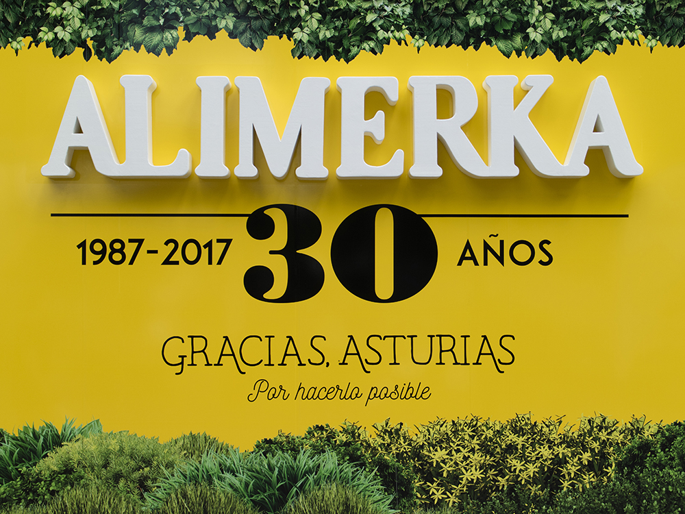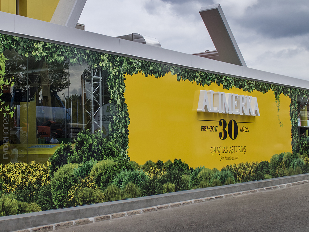 Letras corpóreas logotipo de «ALIMERKA» de 335cm para la feria Internacional de Muestras de Gijón 2017. Encargo de estudio de publicidad Arrontes y Barrera.
