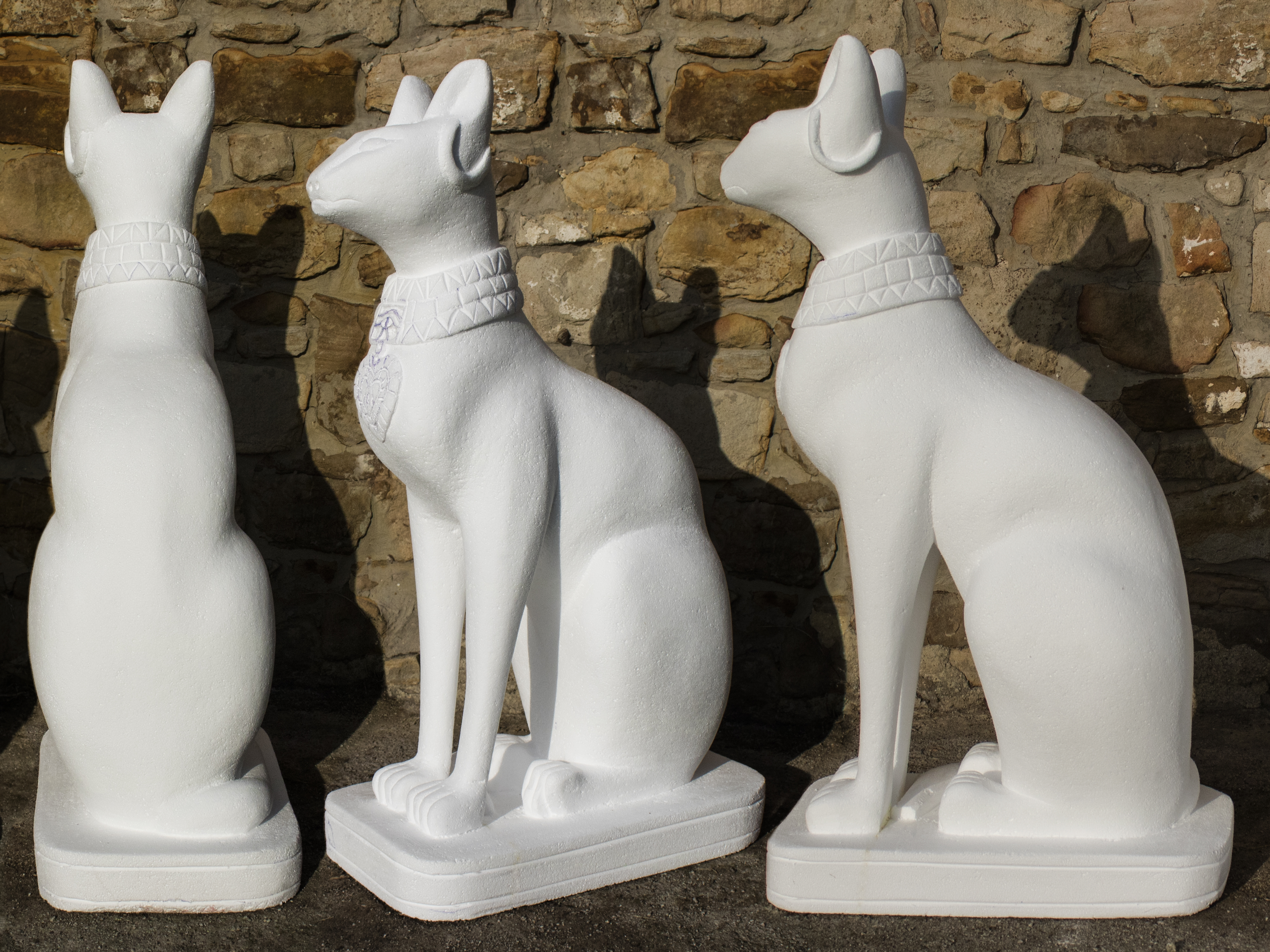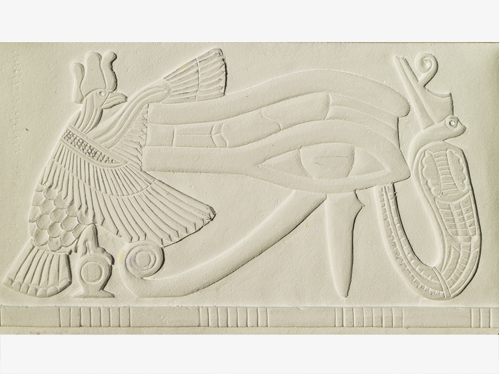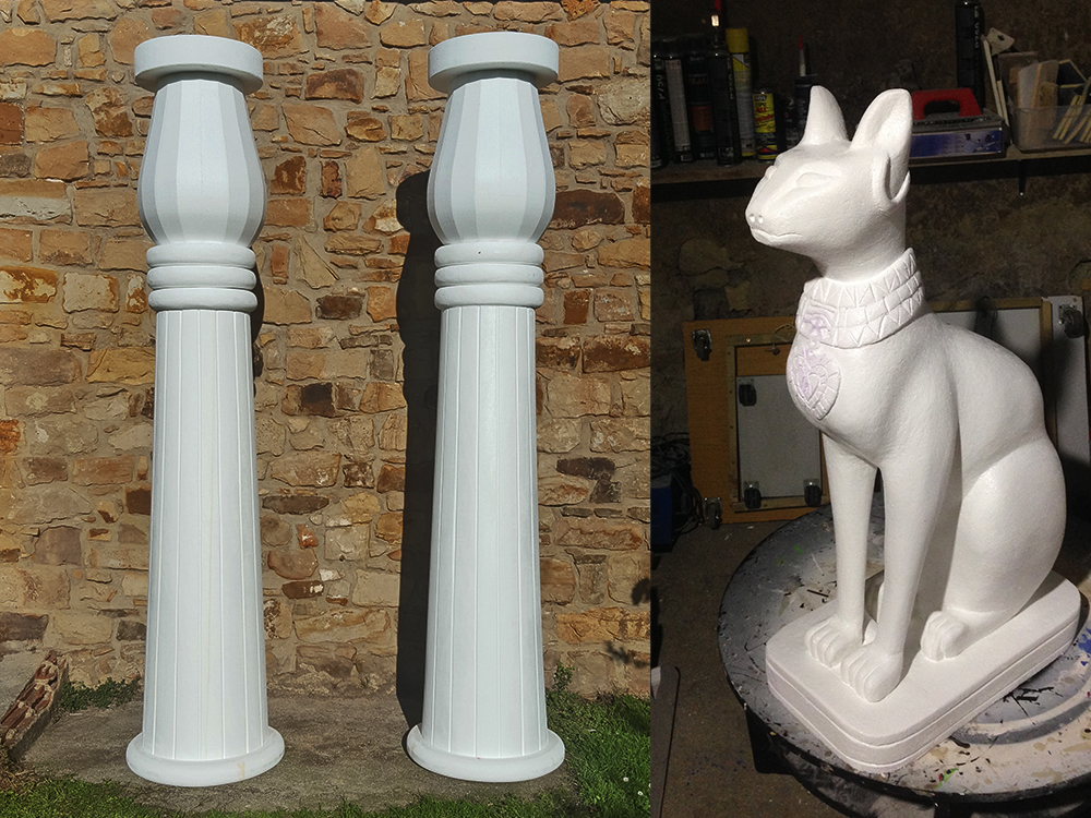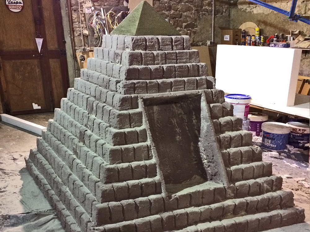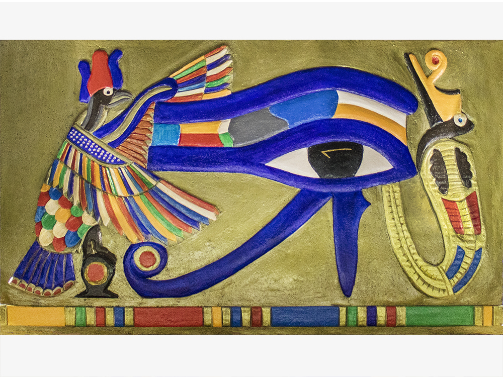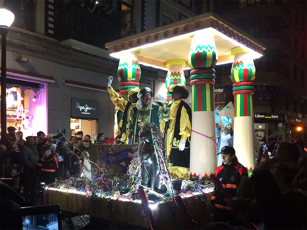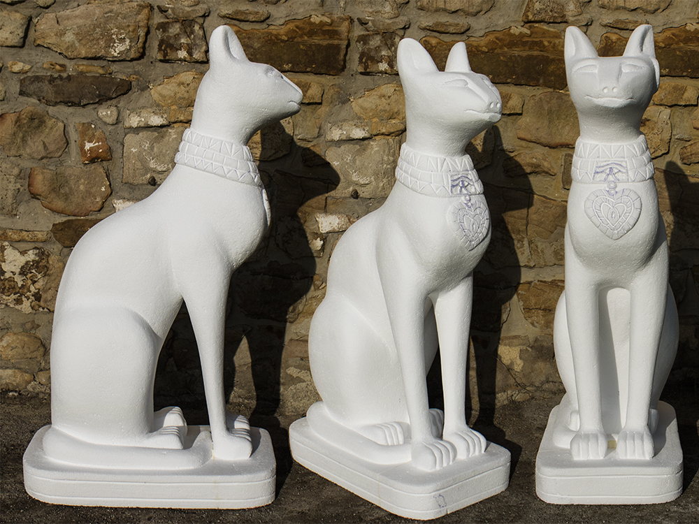 Carroza inspirada en Egipto, compuesta por dos Gatos, cuatro columnas Papiriformes que forman parte de un templete y una Pirámide con asientos en los laterales y el Ojo de Horus en la cúspide, para el Rey Baltasar en la Cabalgata de Reyes 2018 organizada por Divertia Gijón.