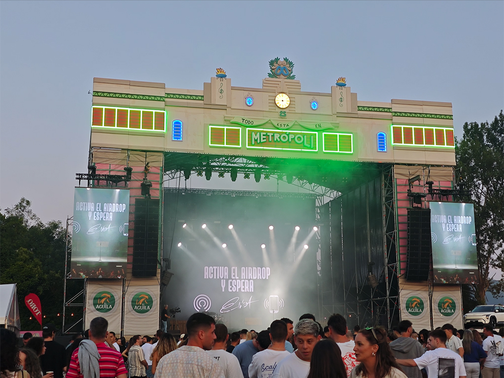 Diseño, producción y montaje de la escenografía del escenario principal del Festival Metrópoli 2024 (Gijón), uno de los eventos culturales y musicales más relevantes del norte de España.