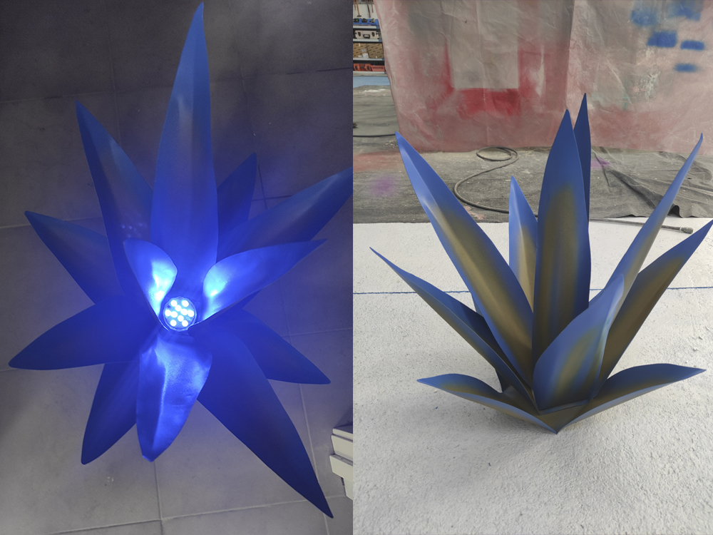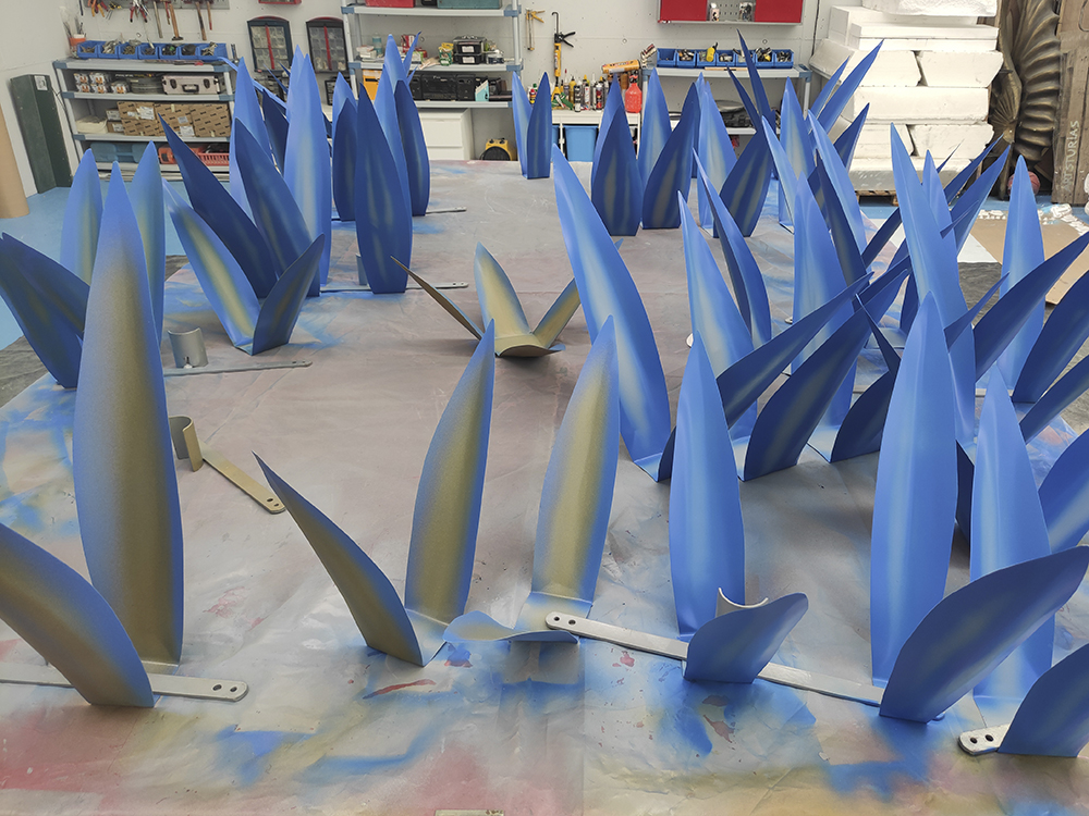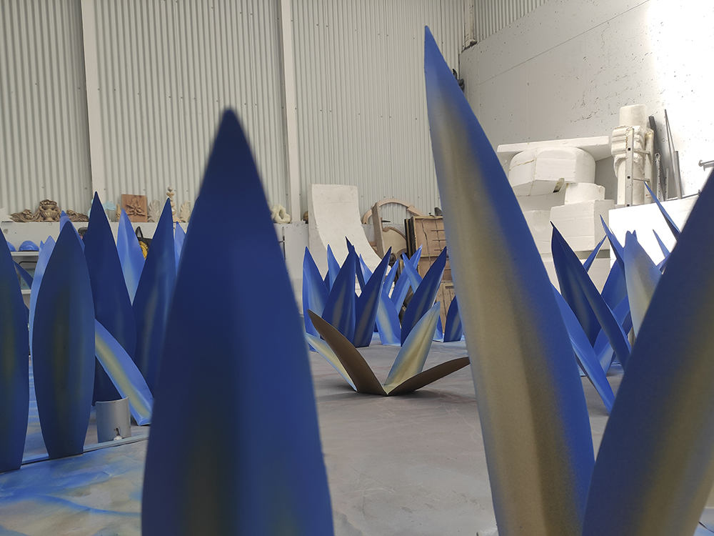 Realizamos una instalación escultórica y escenográfica para la inauguración del restaurante Nota Blu en Marbella. Las piezas fueron realizadas en acero inoxidable y acabadas con pintura artística y luz led interior que emanaba de forma sutil para crear un elemento visual impactante y fotogénico que reforzara la identidad del espacio durante el evento de apertura. Un proyecto diseñado, fabricado y montado íntegramente en nuestro taller.