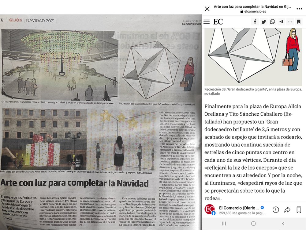 Intervención artística efímera en el espacio urbano realizada para la ciudad de Gijón, con motivo del concurso organizado por Divertia Gijón durante la celebración navideña 2021/2022.El Gran Dodecaedro Brillante es una escultura basada en uno de los cuatro sólidos de Kepler-Poinsot, poliedros no convexos, estudiados por Kepler en el siglo XVI y más tarde por Louis Poinsot a principios del XIX, de ahí su nombre.