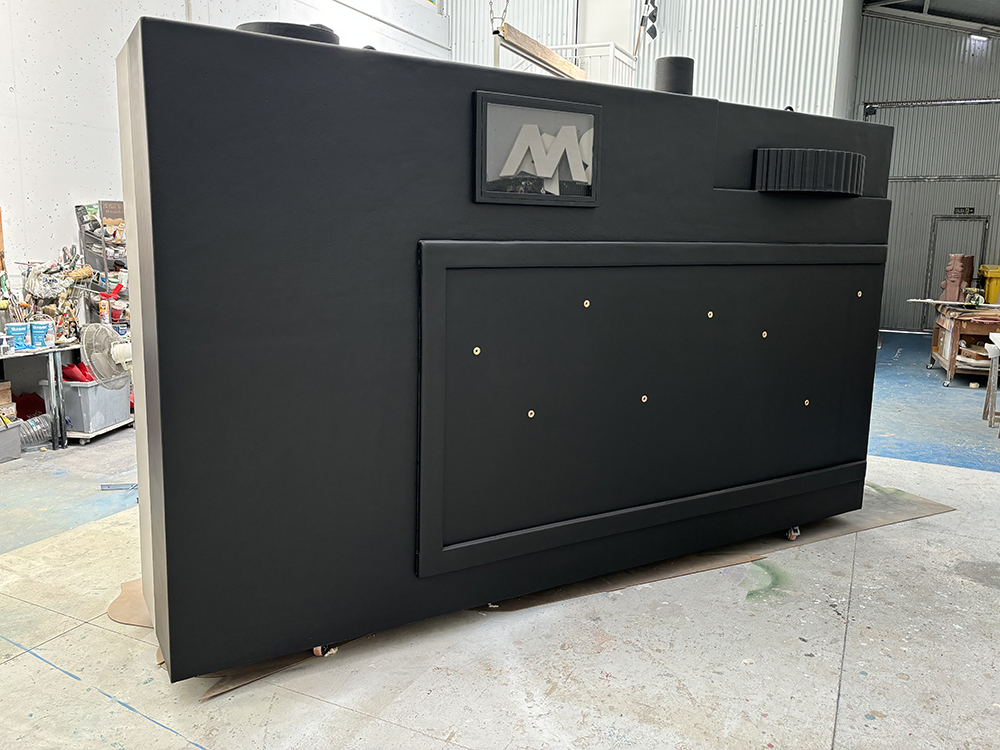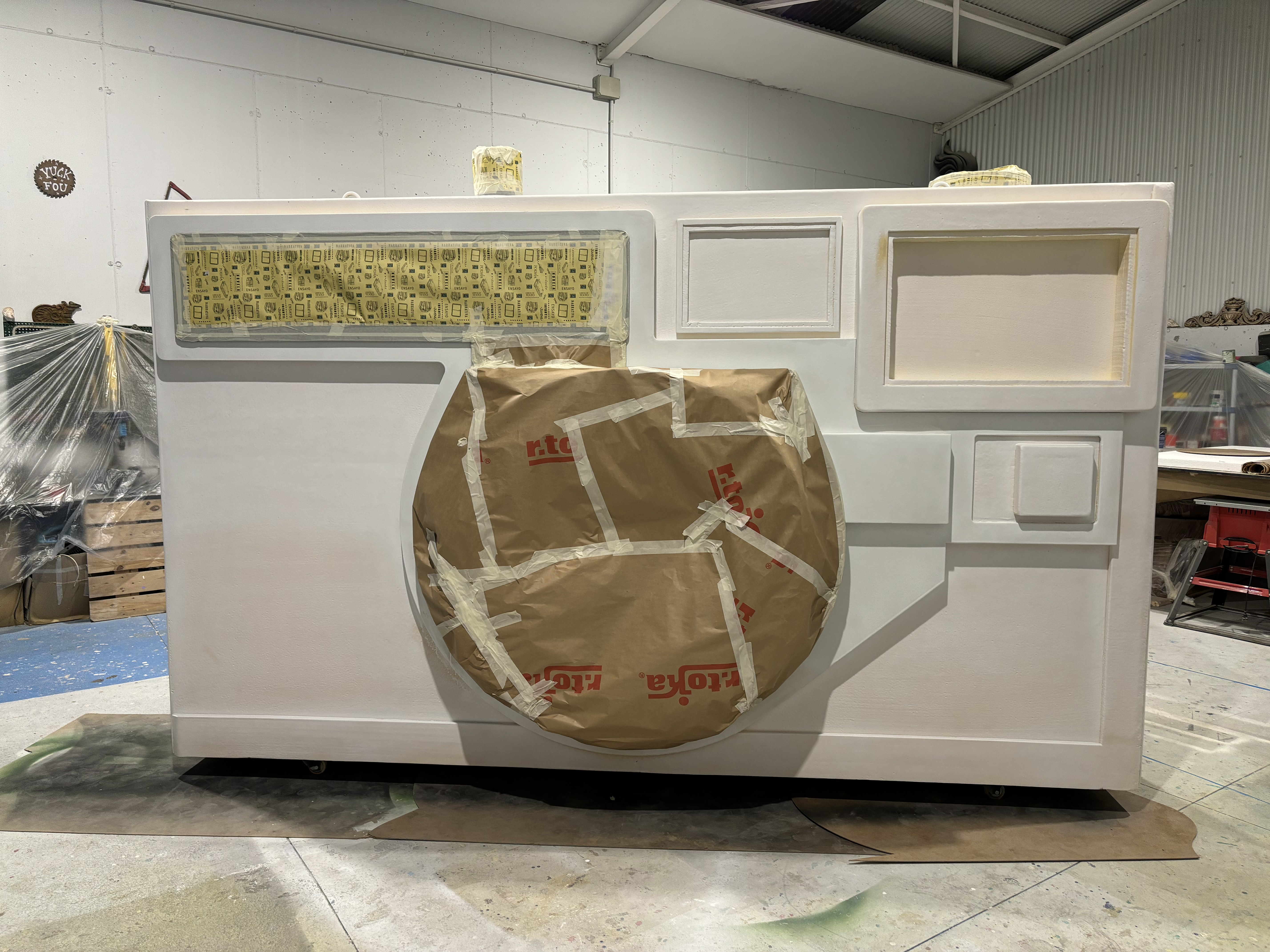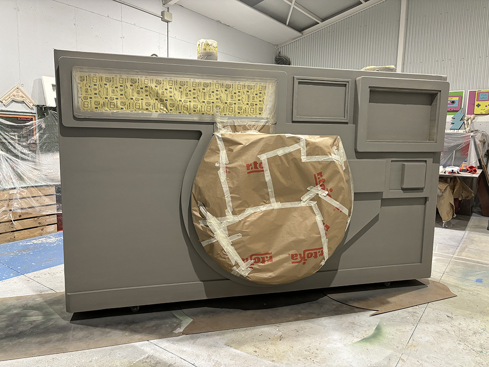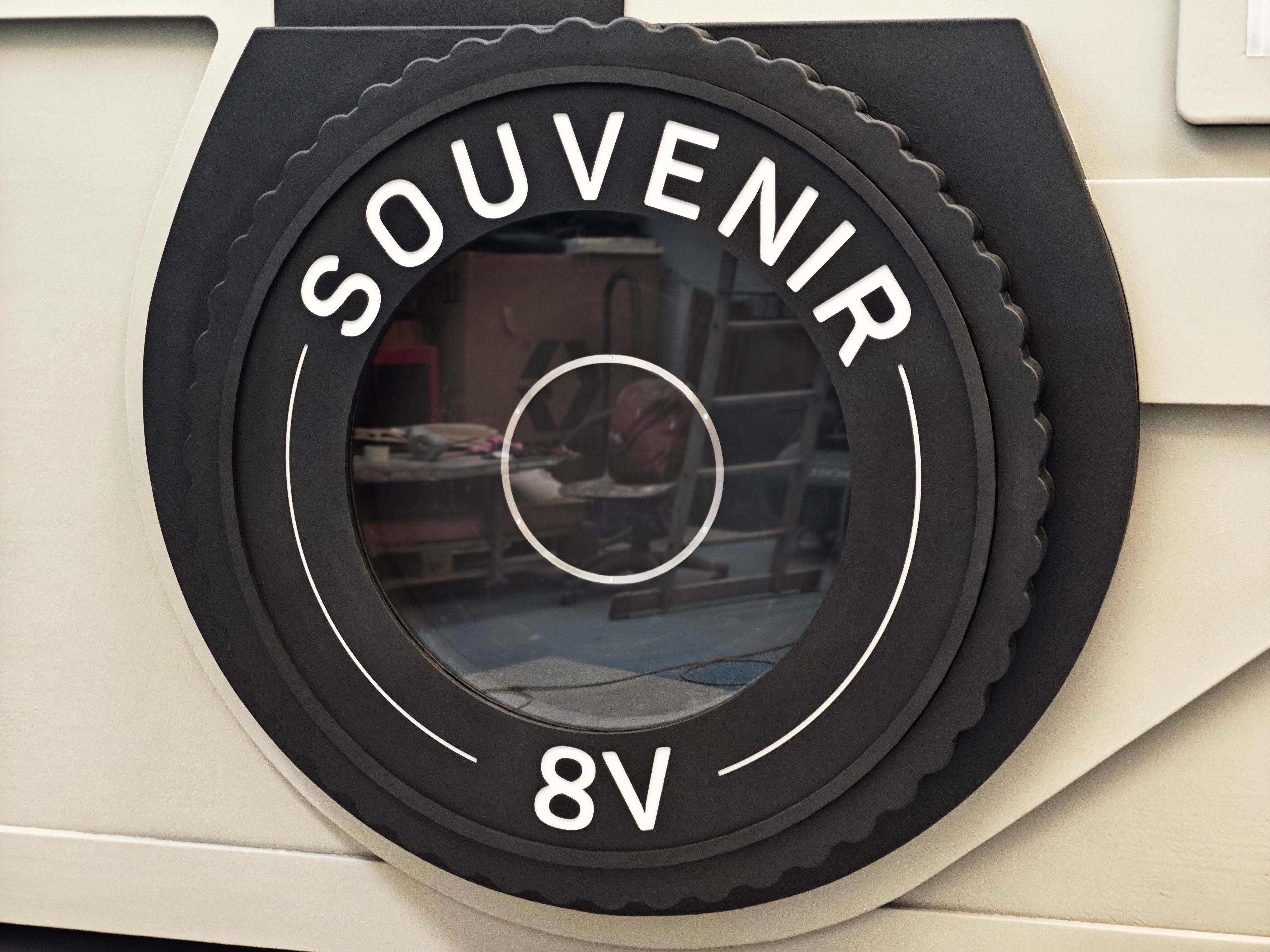 La pieza fue concebida como un elemento expositivo experiencial, inspirado en las cámaras fotográficas clásicas de souvenirs, permitiendo al público interactuar con la instalación.
