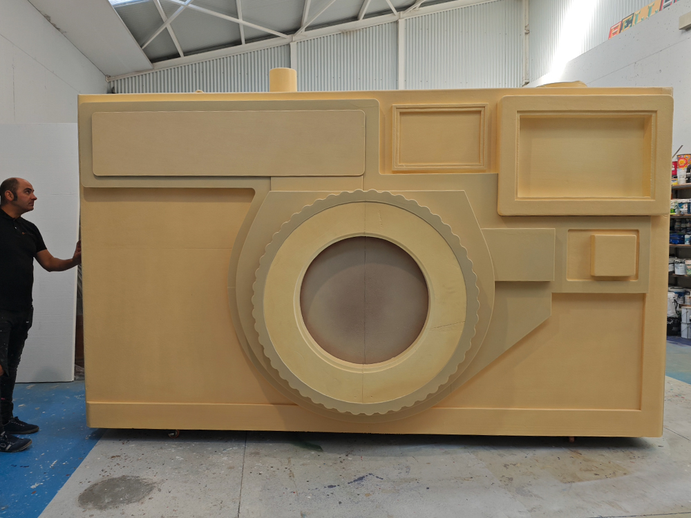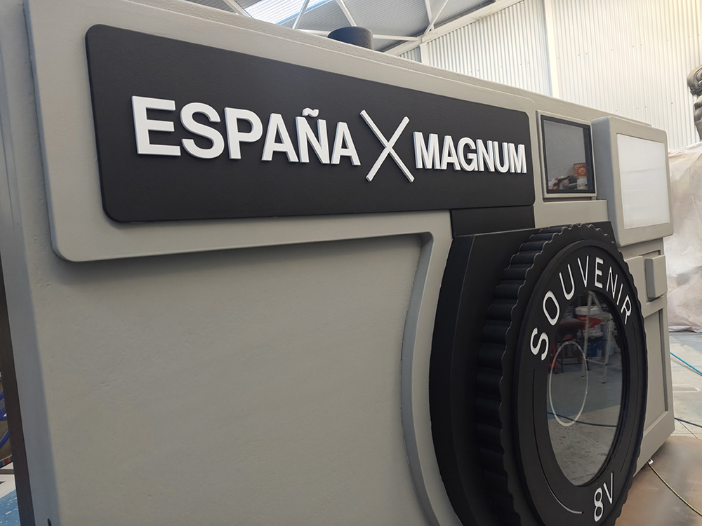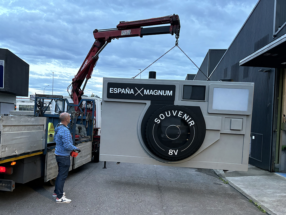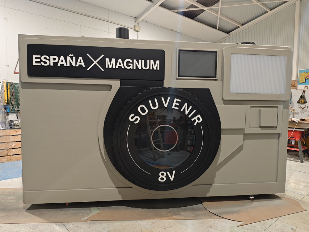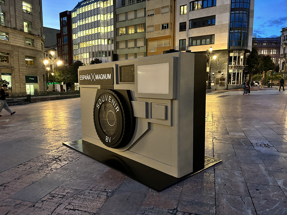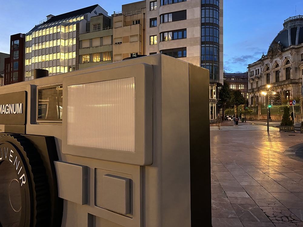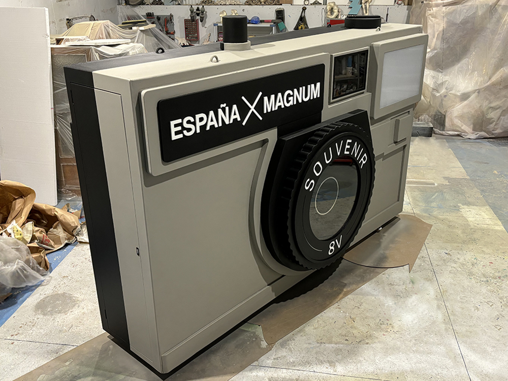 Diseño y fabricación de una escultura de gran formato en forma de cámara fotográfica, creada como instalación artística e interactiva con motivo del Premio Princesa de Asturias de la Concordia 2024, otorgado a la agencia internacional Magnum Photos.