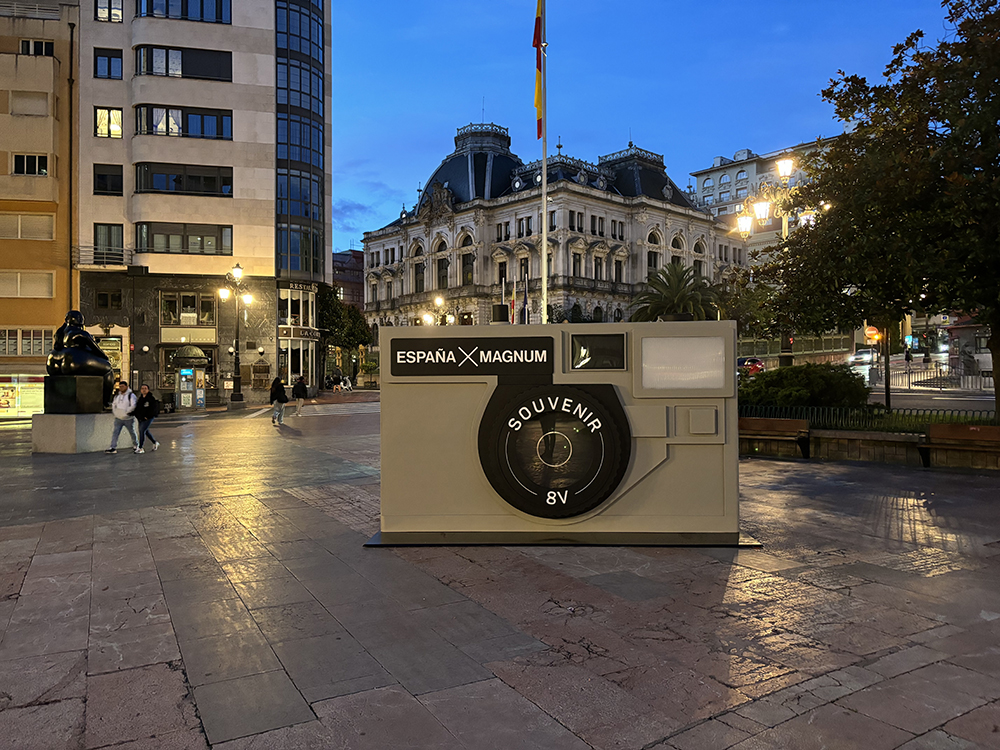La instalación fue ubicada en espacio público, en la Plaza de La Escandalera, Oviedo, funcionando como elemento escultórico, punto de interacción y soporte narrativo, acercando al espectador al legado visual del fotoperiodismo contemporáneo.