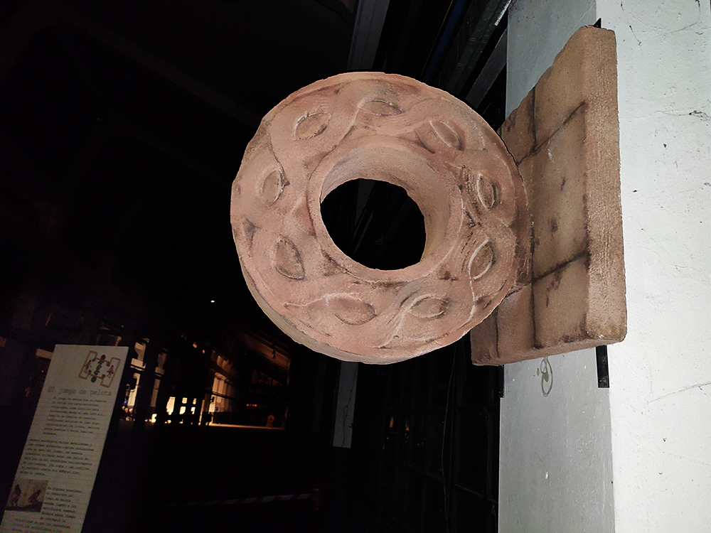 La pieza fue creada como elemento expositivo para contextualizar las prácticas culturales y deportivas de las civilizaciones prehispánicas, fundamentales en la cosmovisión y vida social de Mesoamérica.