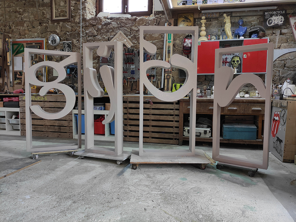 Reproducción a escala de las «Letronas», marca turística de Gijón. Talladas en EPS, Poliestireno Expandido, con estructura interna de hierro para su estabilidad y endurecidas con poliurea, fibra de vidrio y resina, pintadas con pintura de alta calidad y acabado de poliuretano transparente bicomponente.